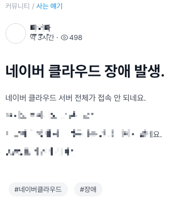 모든 원인은 무궁무진하지만 아무짓도 안했는데 잘되던게 모든 운영사이트가 마비가 되니 이쯤이면 ncp 측에서 장애가 난걸로 확신이 들었는데 개발자포럼 okky 혹시나 들어가봤는데 역시나… ncp 측에서 장애가 난게 확인이 되었다.
